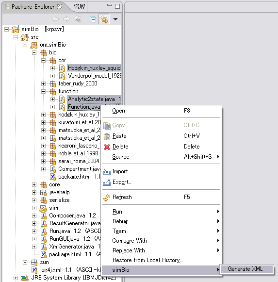 select [simBio] - [Generate XML], then XML files for the specific class will be created.
